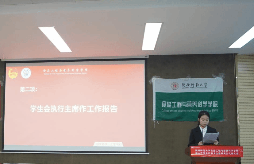 大会选举并产生了食品学院第六届学生(研究生)委员会委员、大会主席团成员,大会秘书长刘笑宣读了新当选的主席团成员、和委员会委员名单。